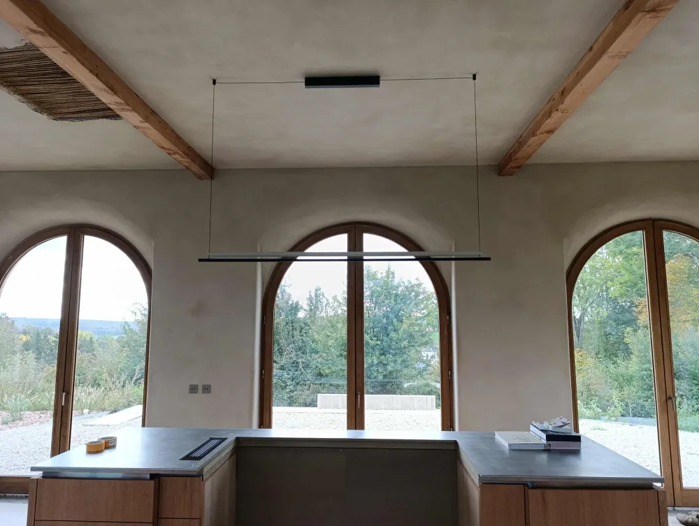 Notre électricien a installé un lustre sur mesure dans une cuisine.